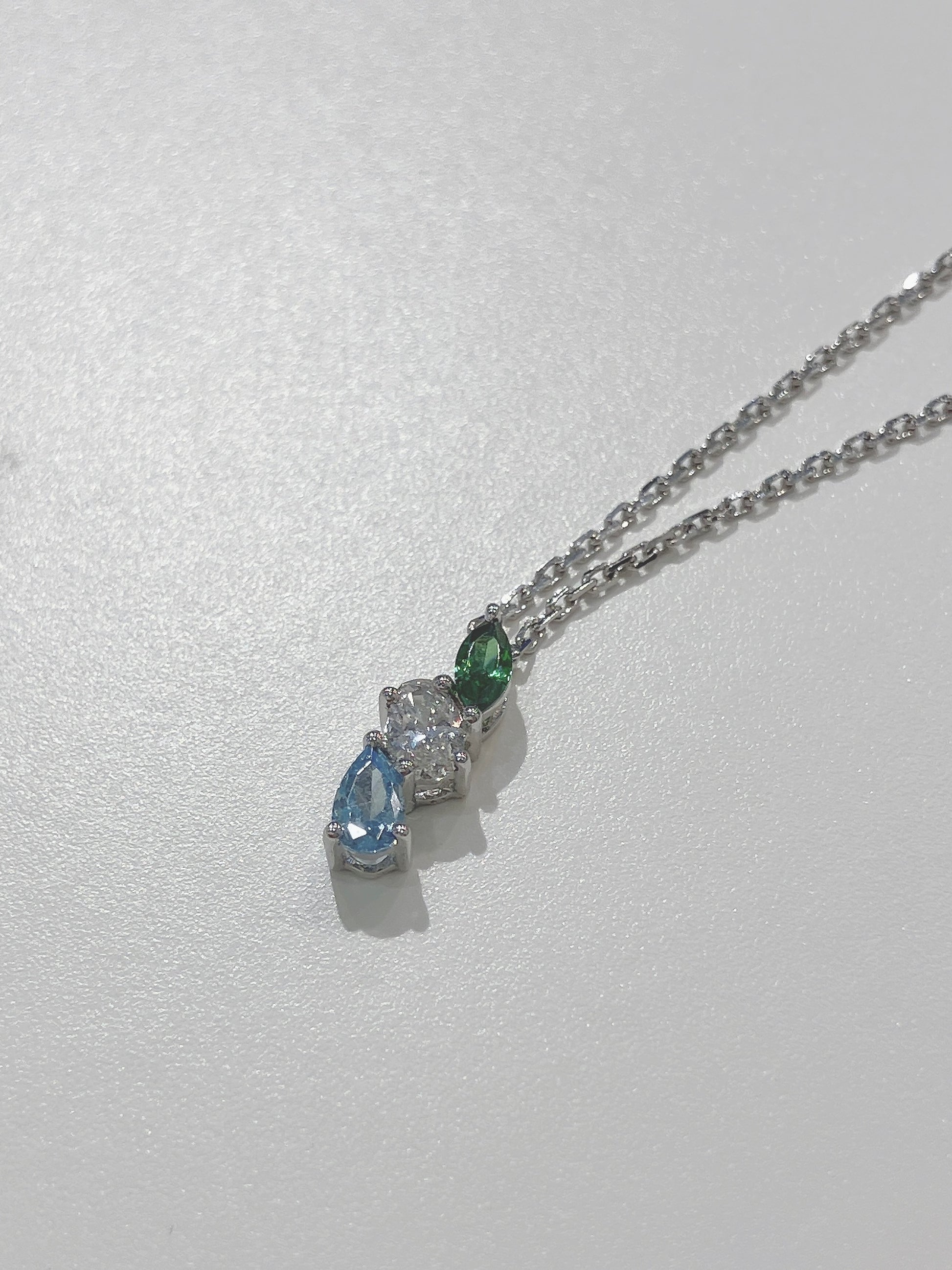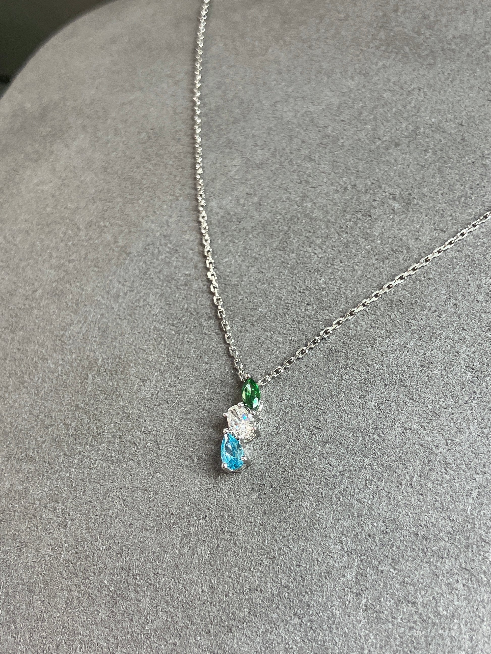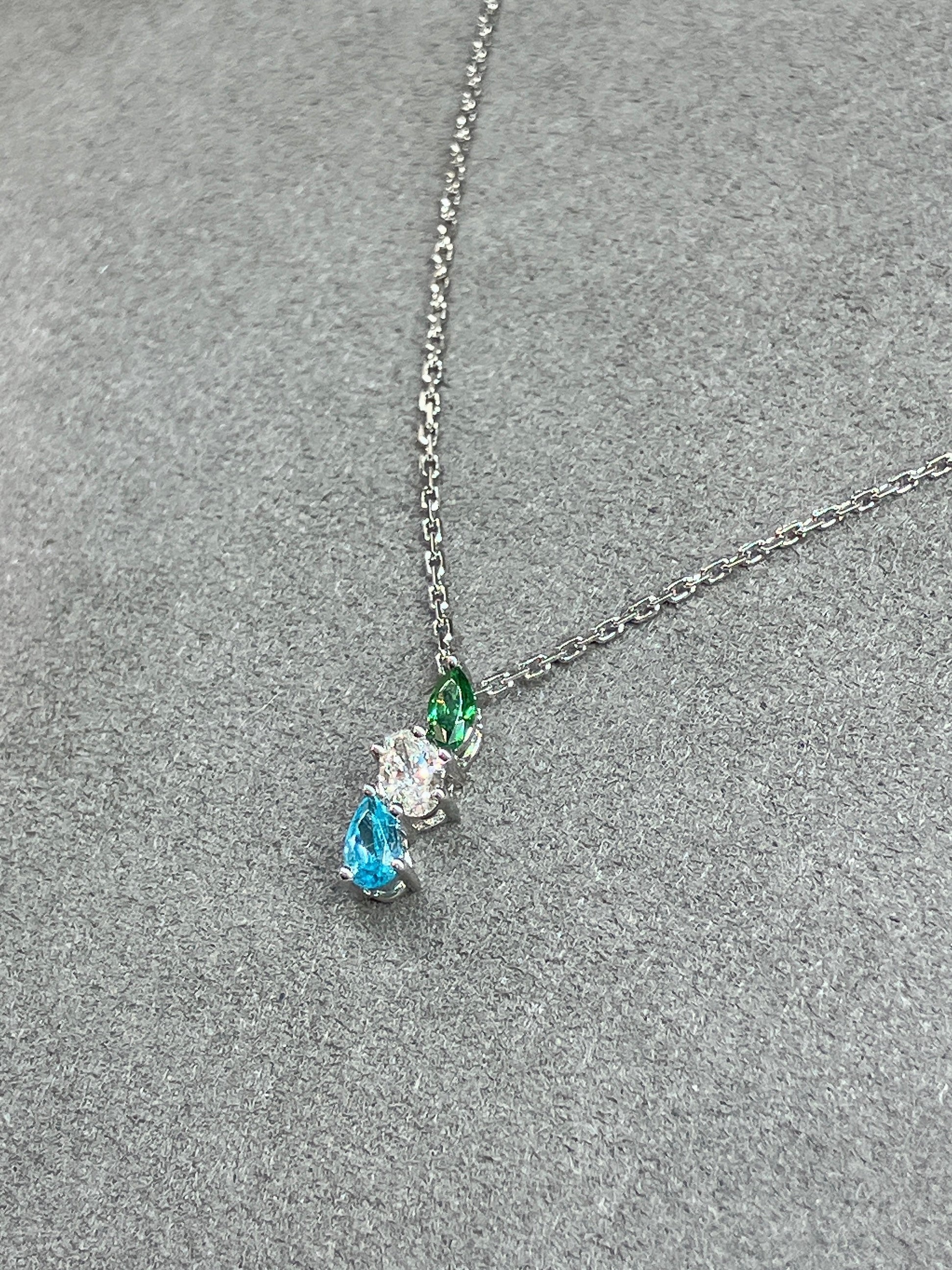 S925 綠白藍三色水滴頸鏈42AJNO156