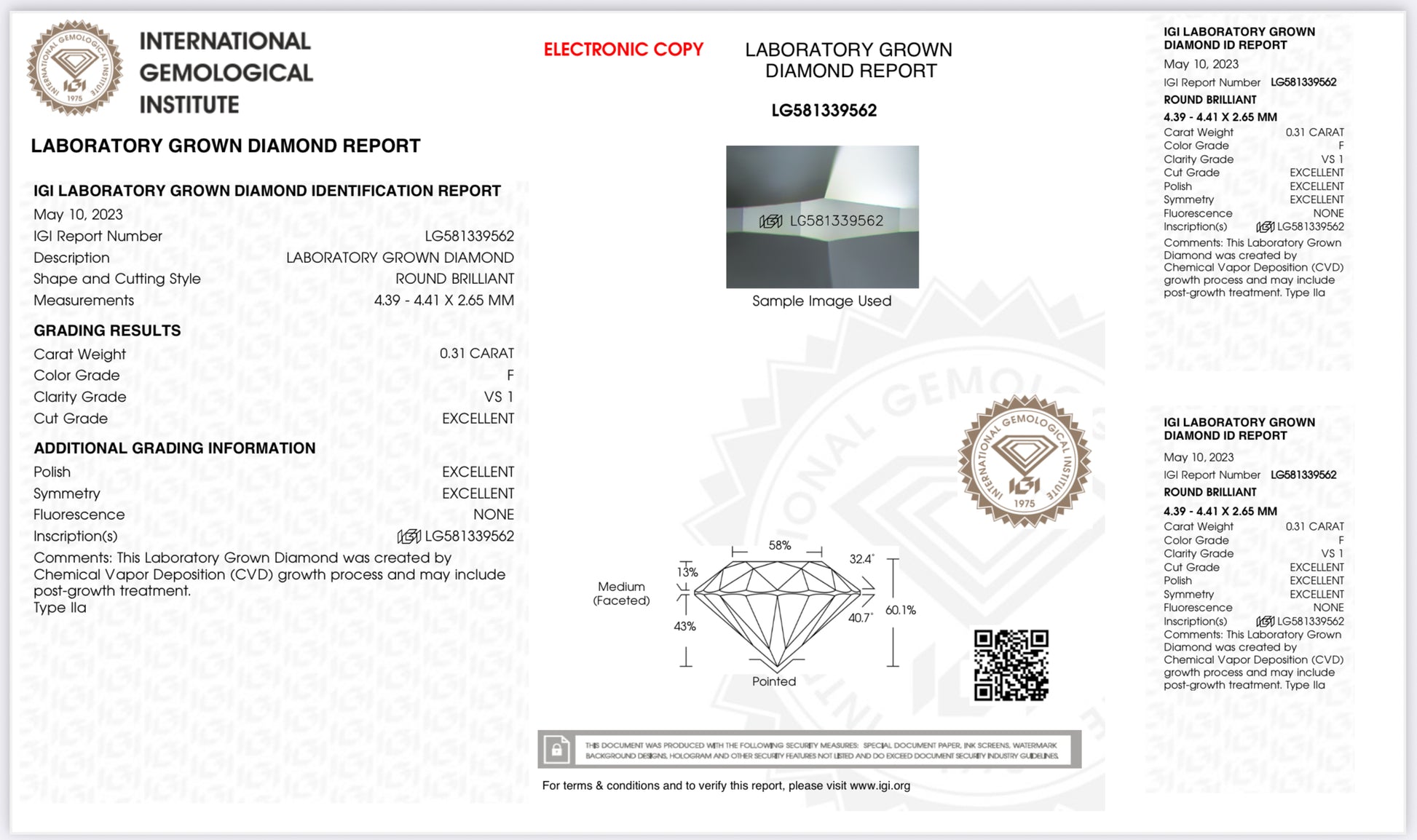 鑽石帶有鐳射證書號字邊 --IGI 581339562
