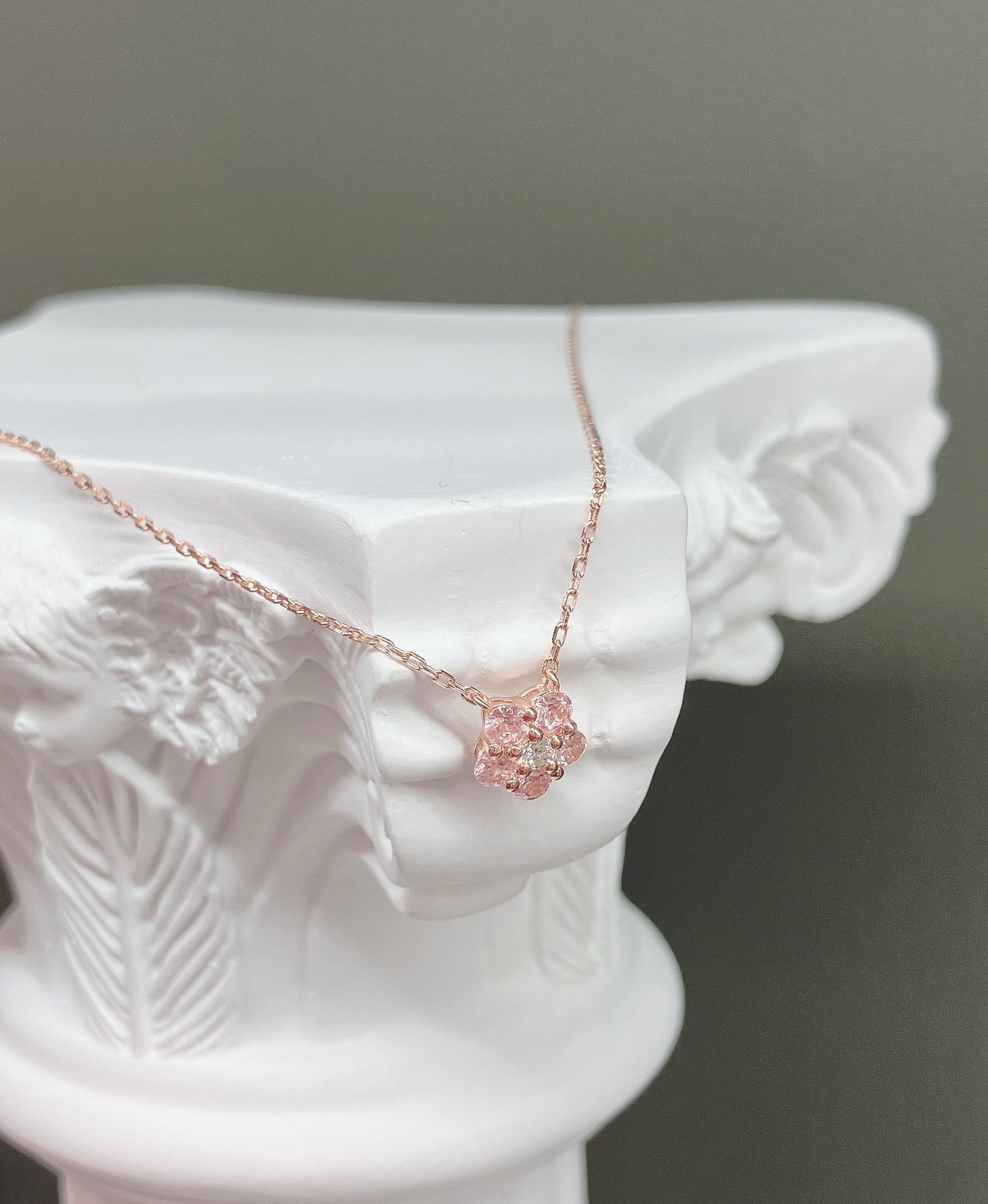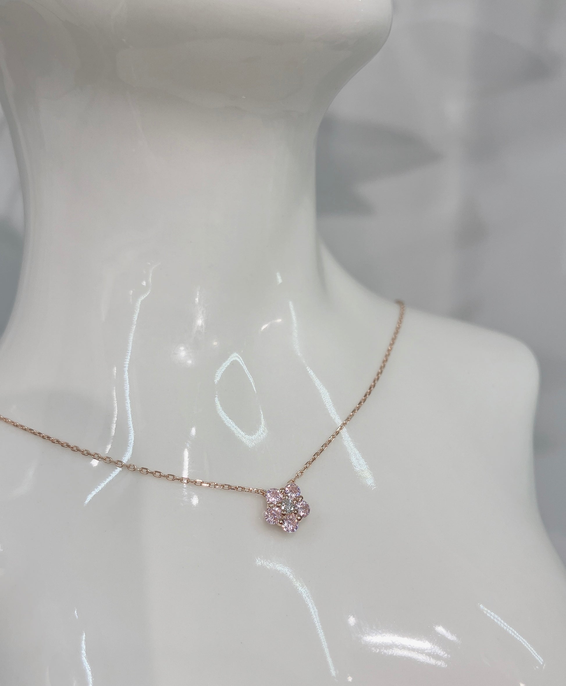 吊墜通常以櫻花形狀為主題,搭配櫻花粉色的寶石(如粉晶或合成寶石),展現出自然與女性的柔美。