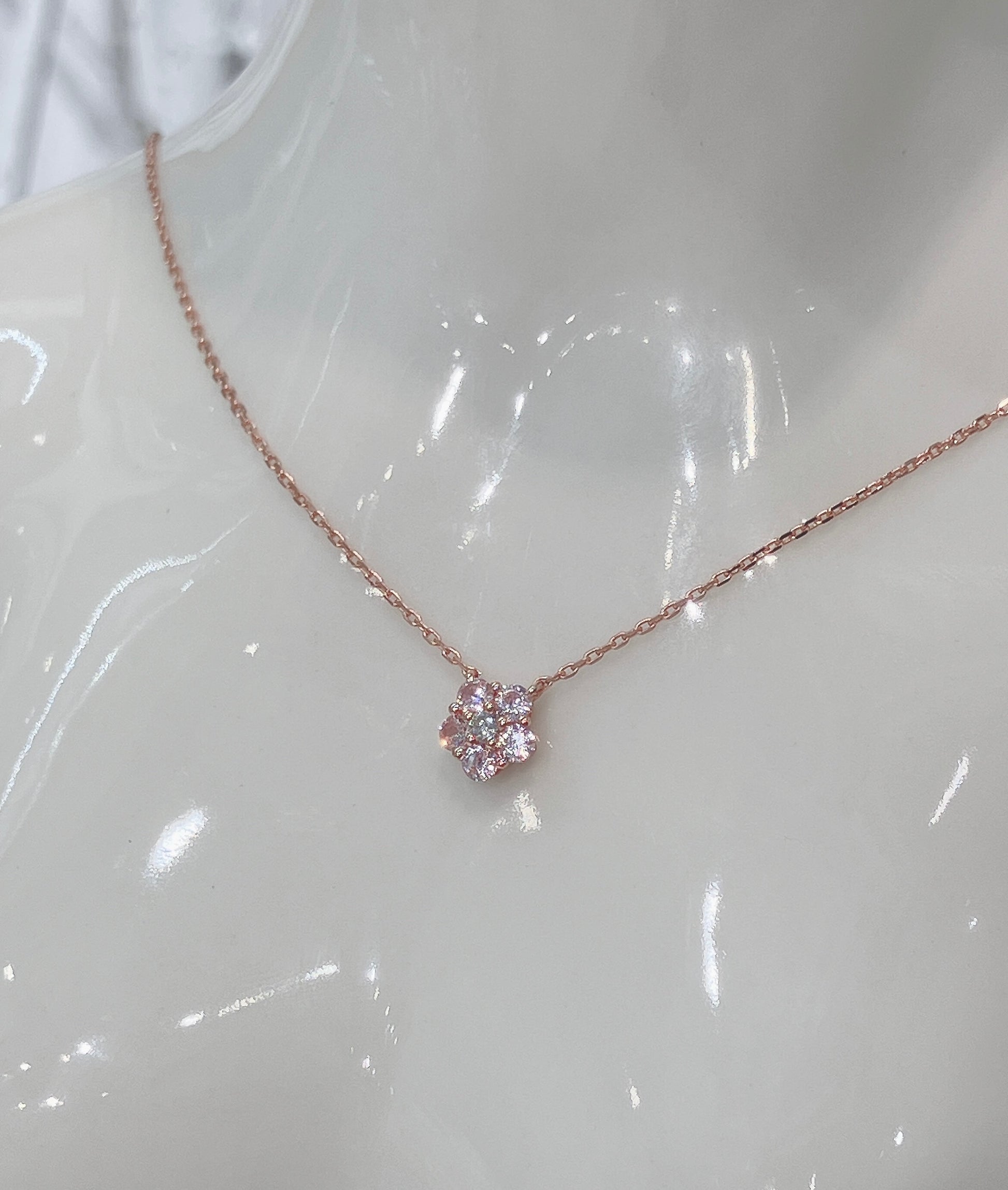 S925 粉紅鋯石小櫻花鑽石頸鏈42ASNO14