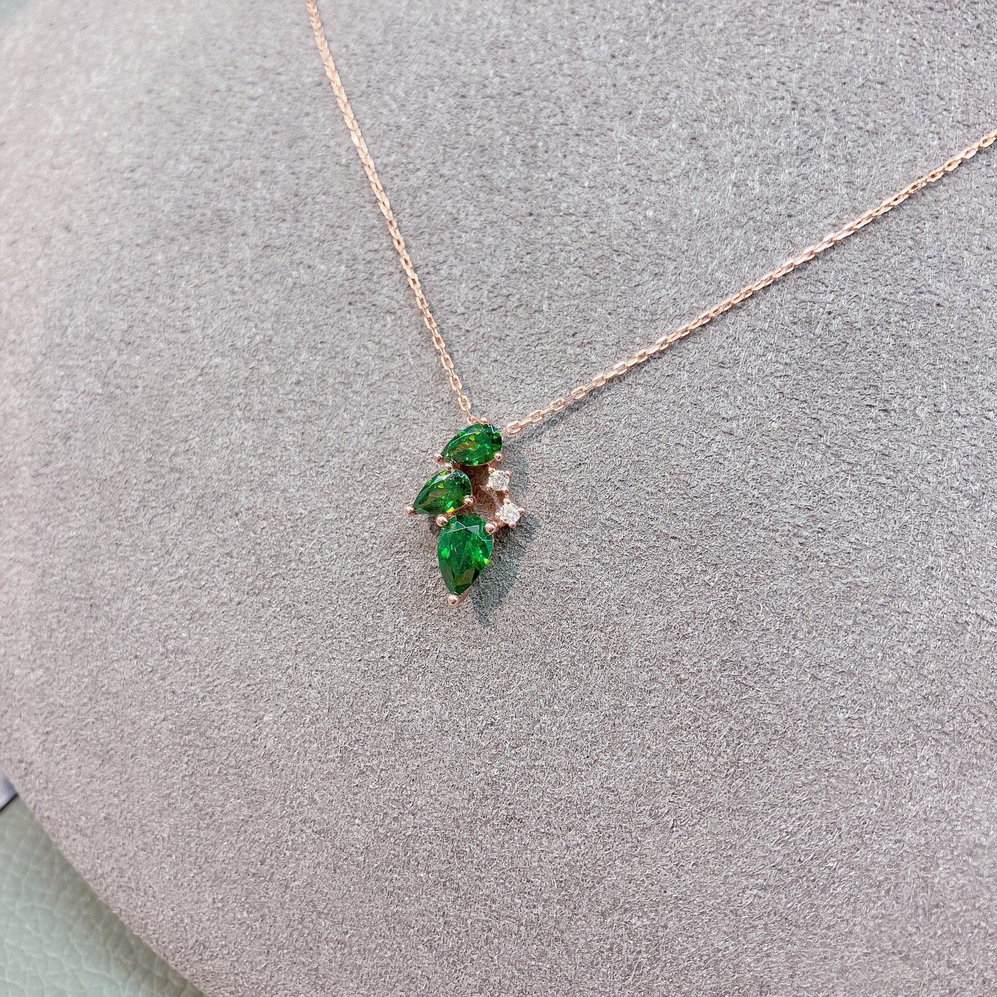 S925 綠色鋯石鑲嵌L鑽石套鏈42AJN0173