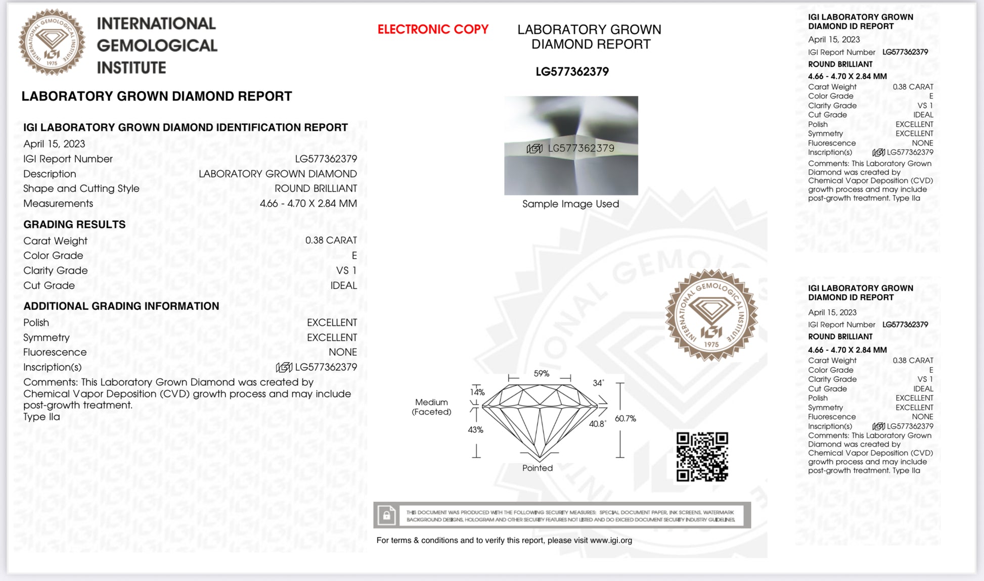 鑽石帶有鐳射證書號字邊 --IGI 577362379