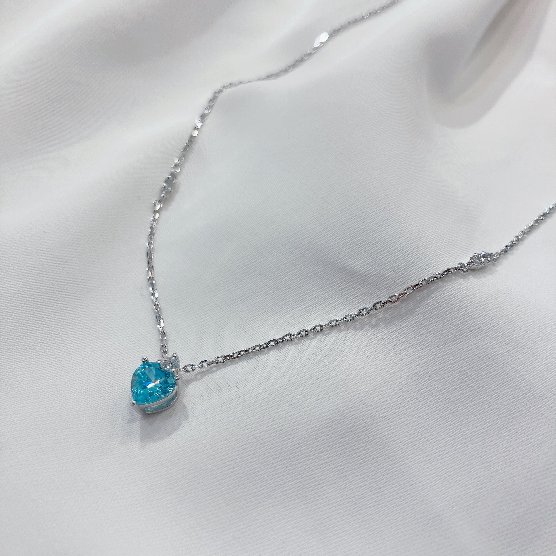 *New* S925 優雅天藍心形鋯石皇冠鑽石頸鏈42AJN0178