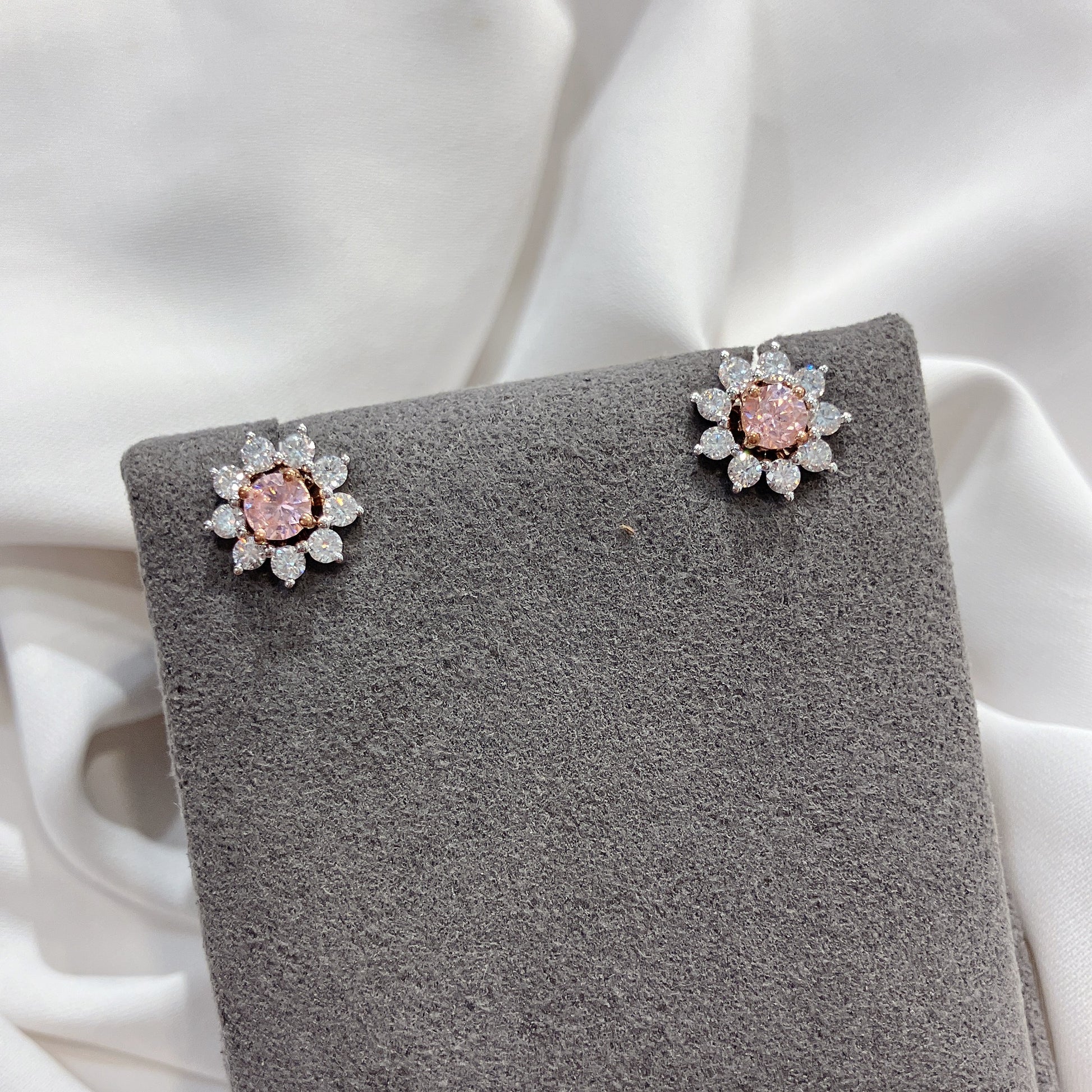 *New* S925 璀璨粉紅鋯石拼太陽花鑽石耳環42AJE0168