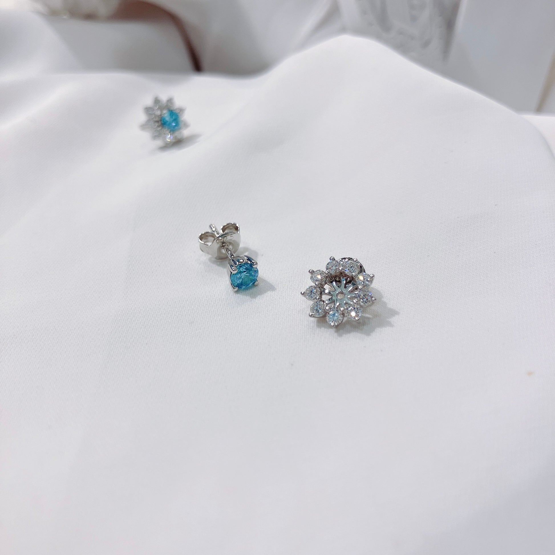 *New* S925 璀璨天藍鋯石拼太陽花鑽石耳環42AJE0168