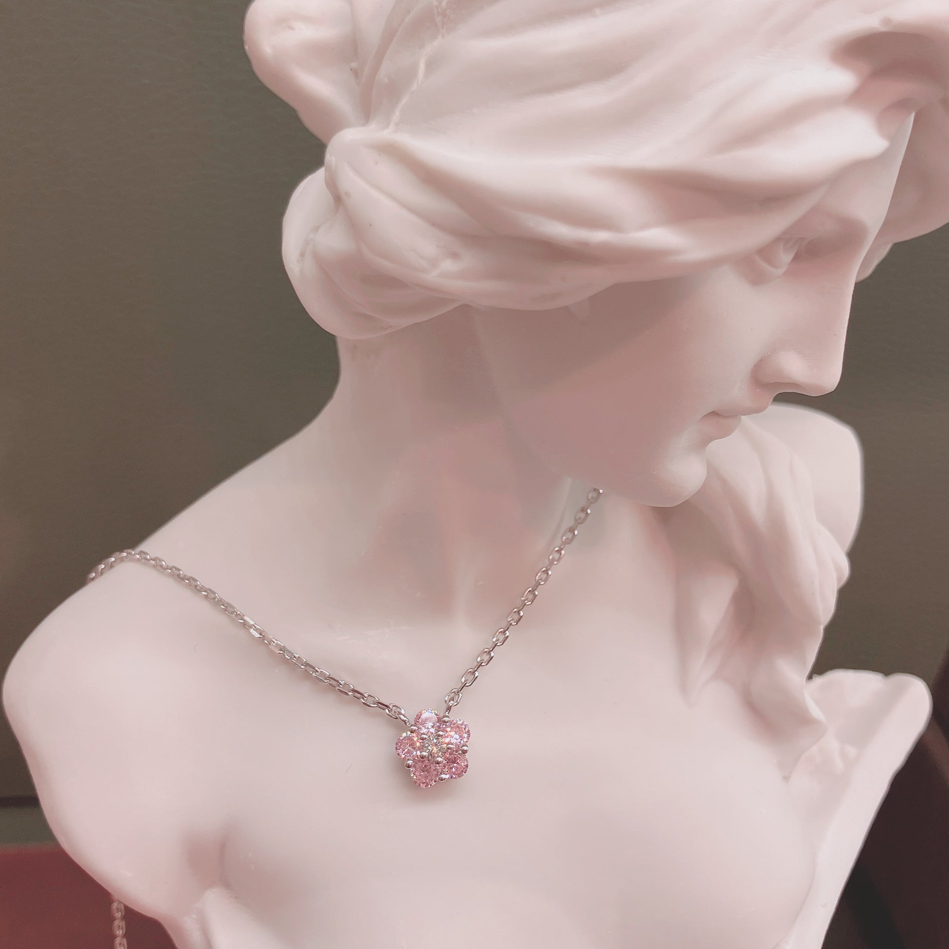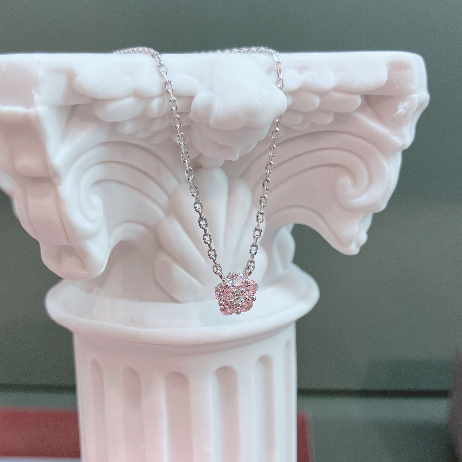 *New* S925 粉紅鋯石小梅花鑽石頸鏈42ASNO14